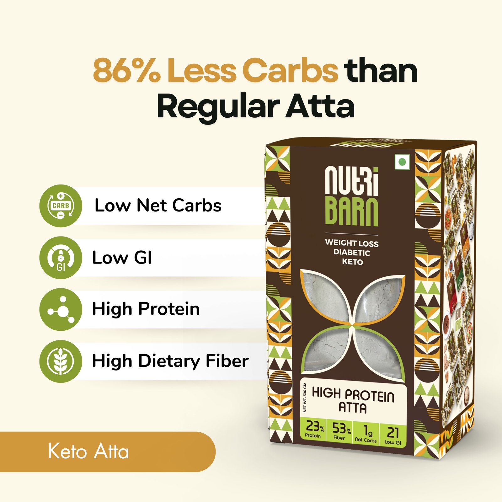 Net Carb & 23% High Protein/Soft Roti, Identical to Wheat Flour, Low Carb, Pre-Biotic High Fibre, Low GI, Keto Diet, Weight Loss, Diabetic Friendly