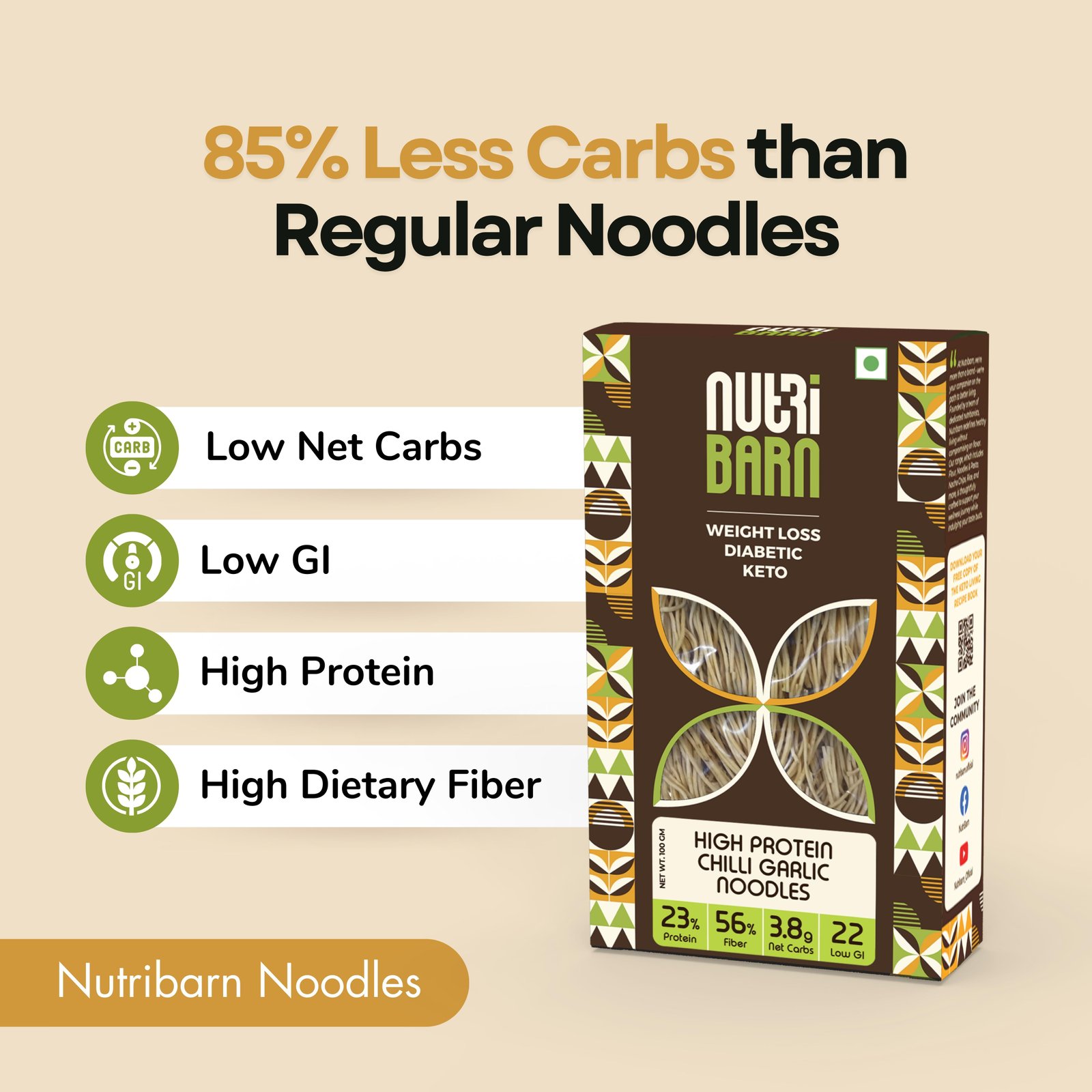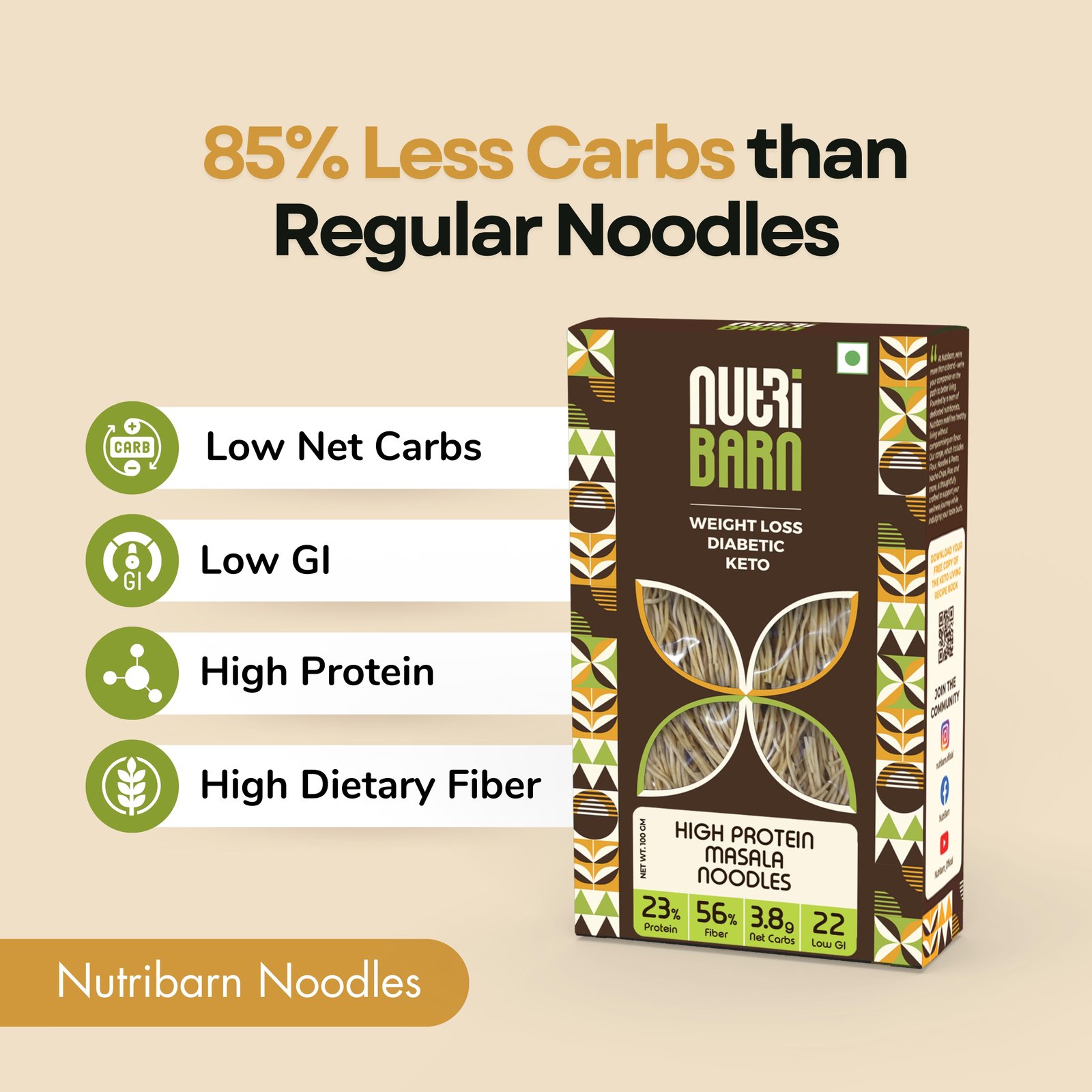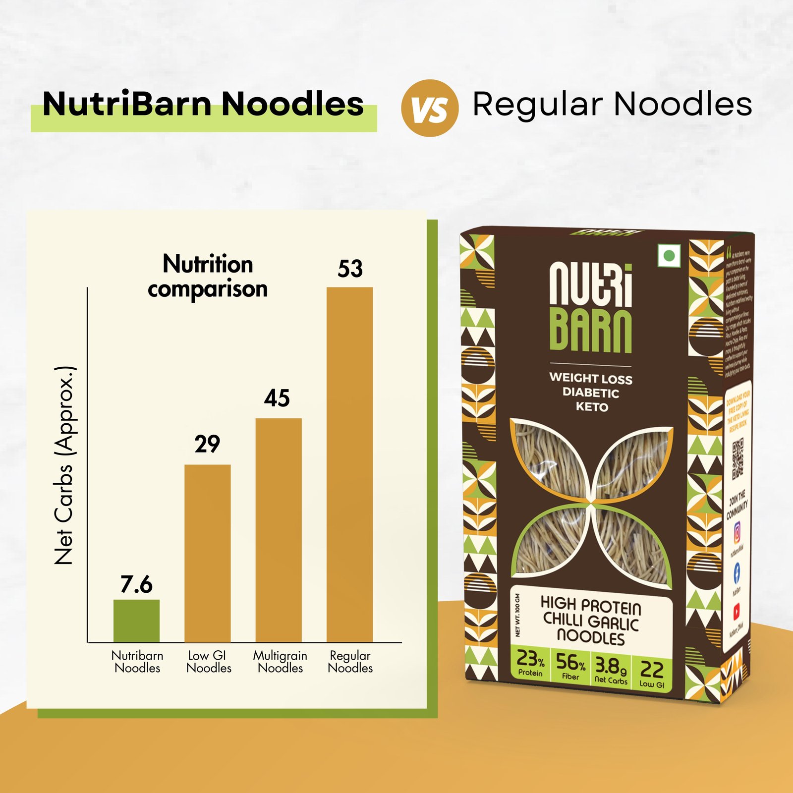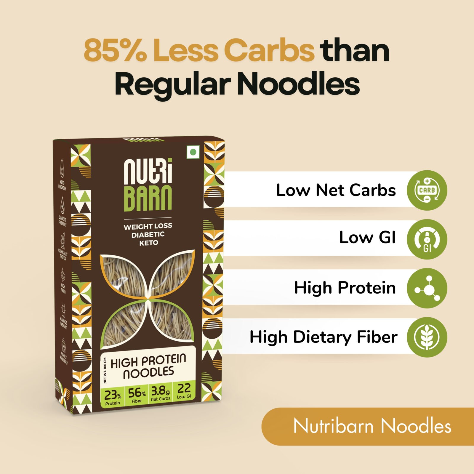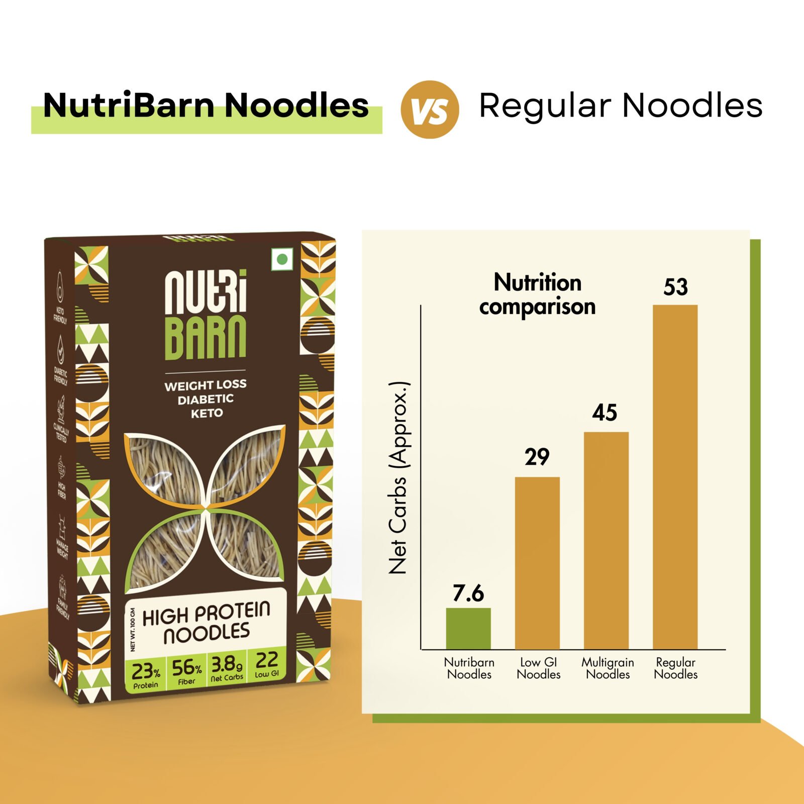 Net Carb & 23% High Protein/Serv, Identical to Regular Noodles, Low Carb, High Fibre, Low GI, Keto Diet, Weight Loss, Diabetic Friendly