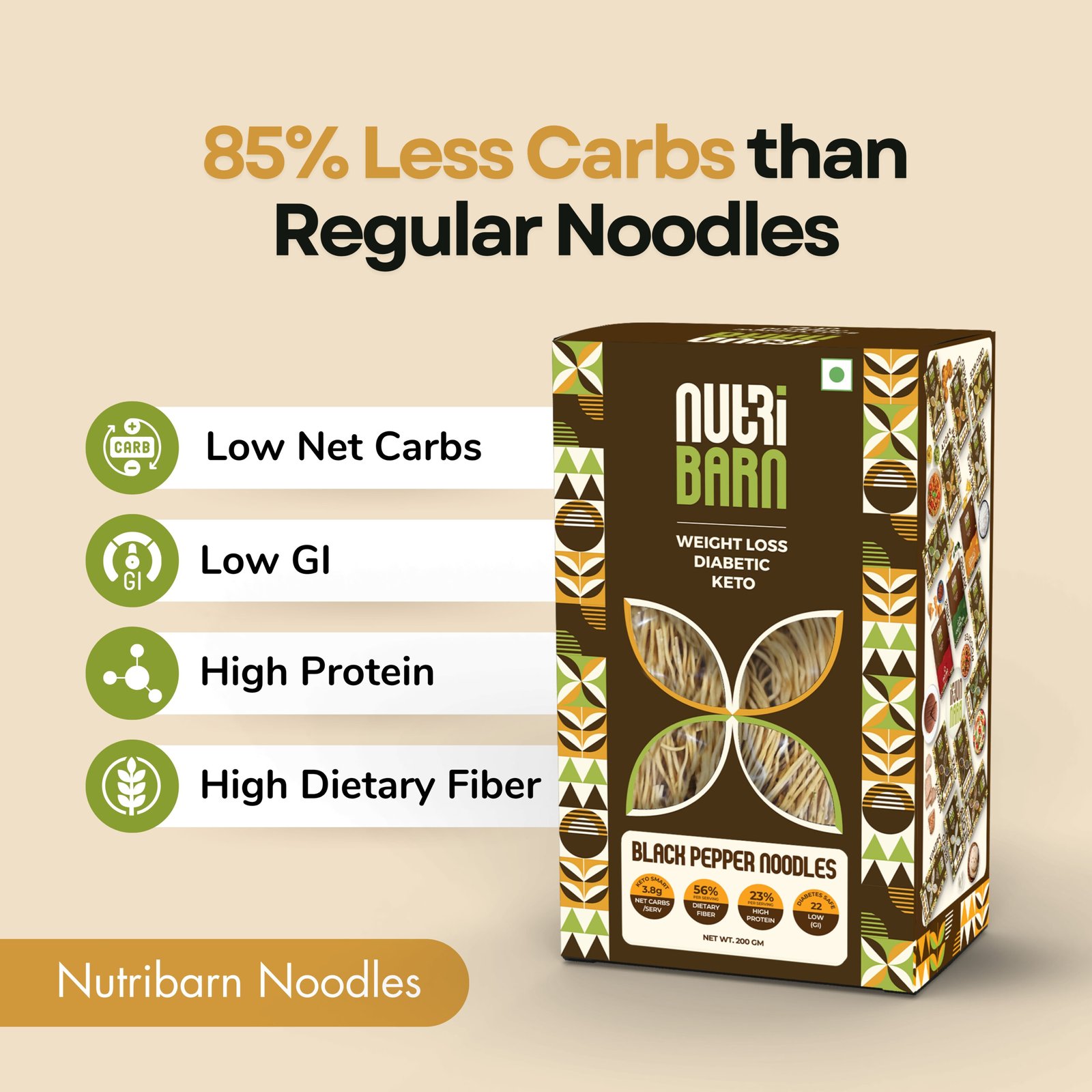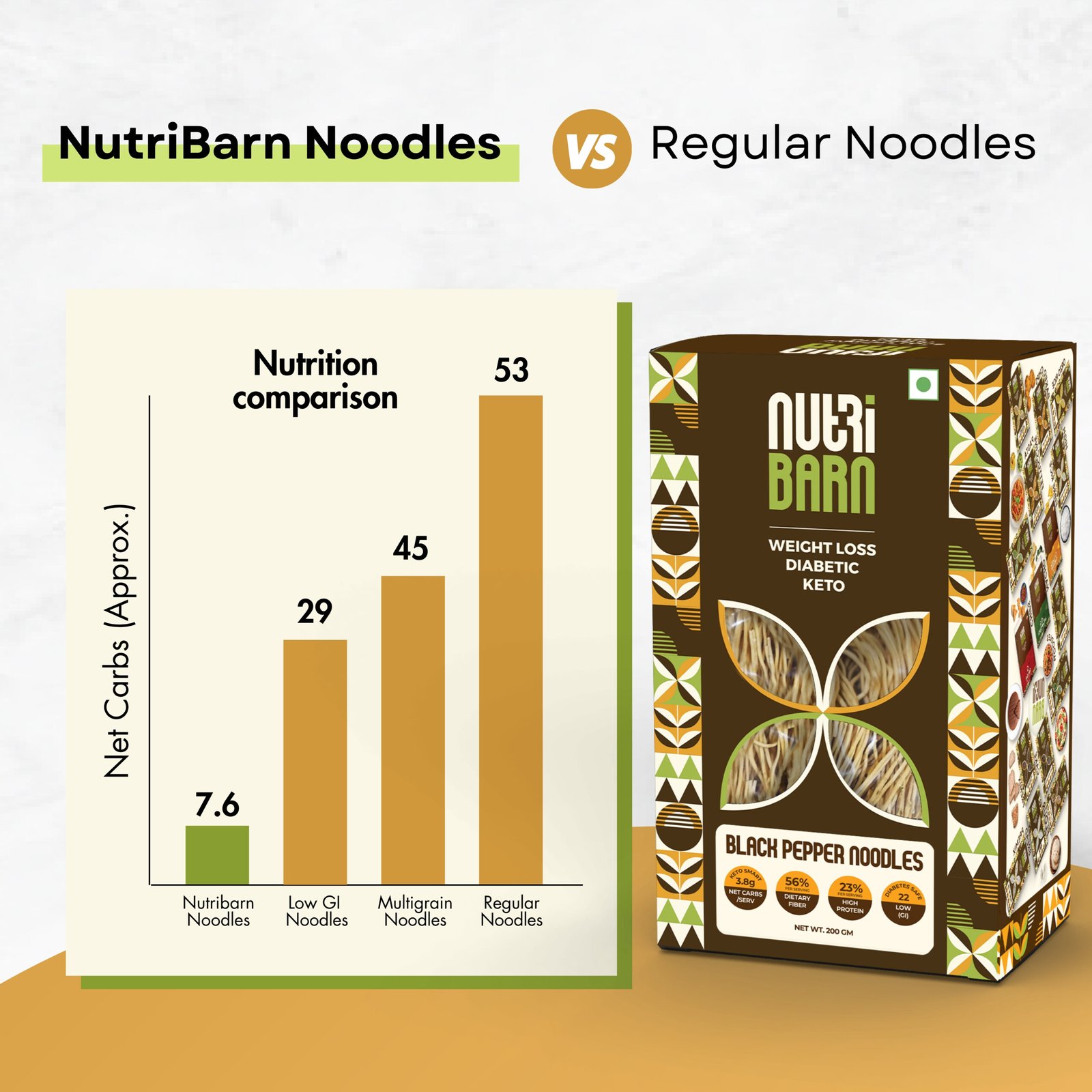 Net Carb & 23% High Protein/Serving, Identical to Regular Noodles, Low Carb, High Fibre, Low GI, Keto Diet, Diabetic Friendly