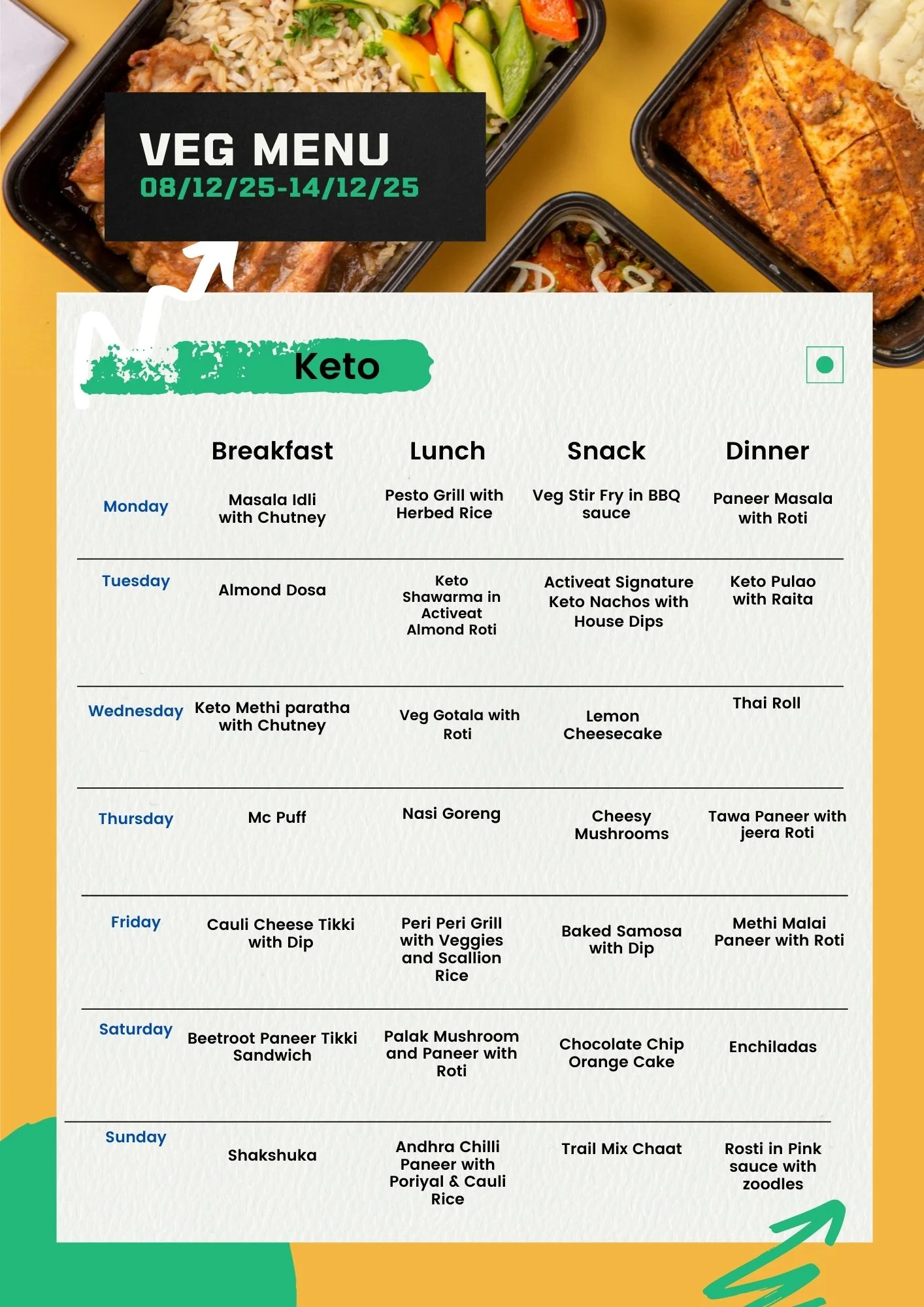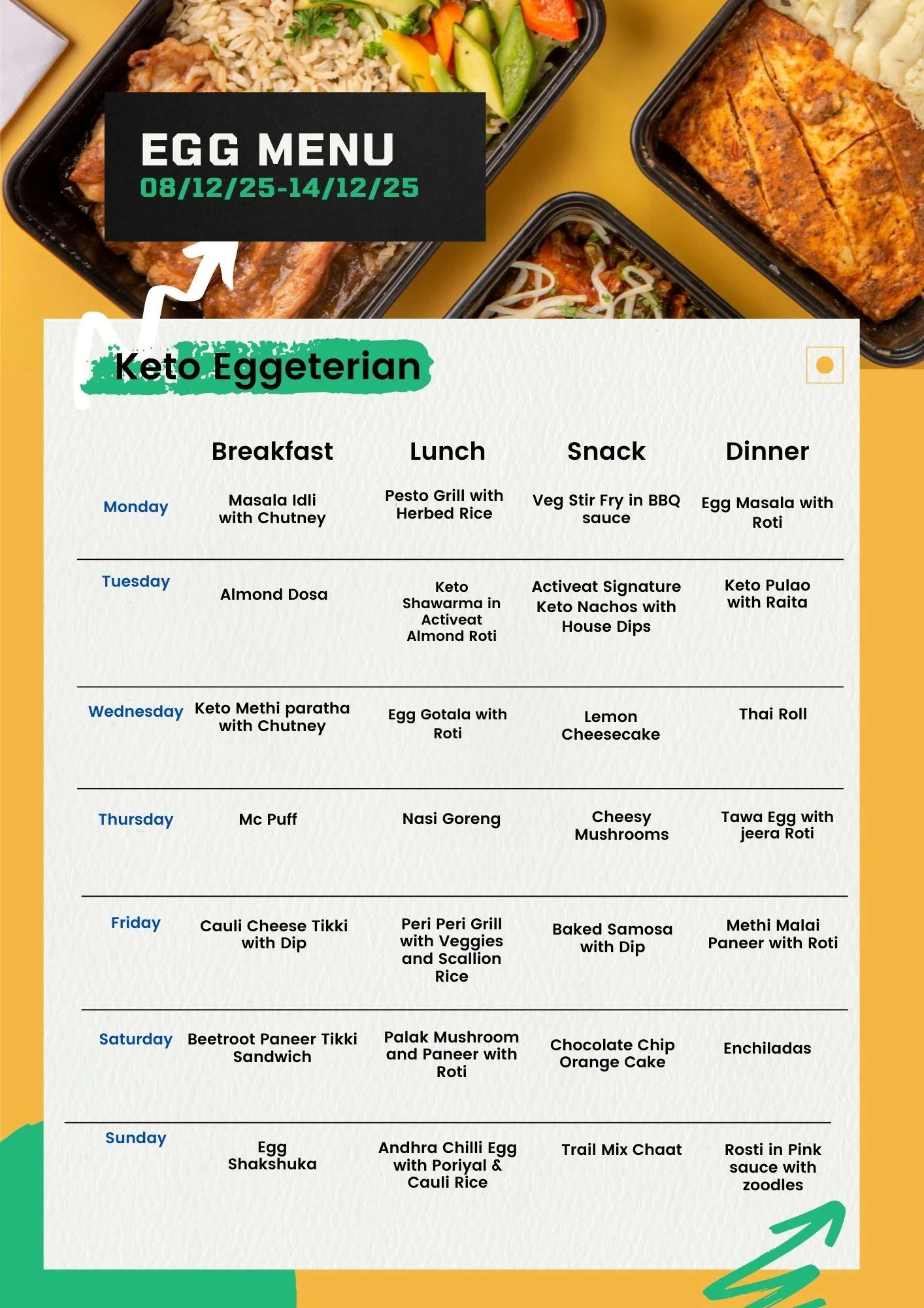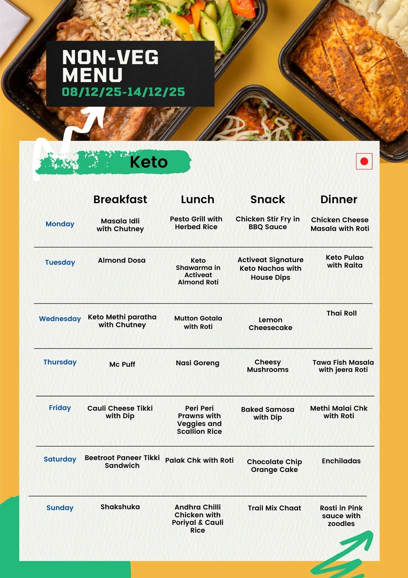 | Meal Type | Veg, Non-Veg, Egg |