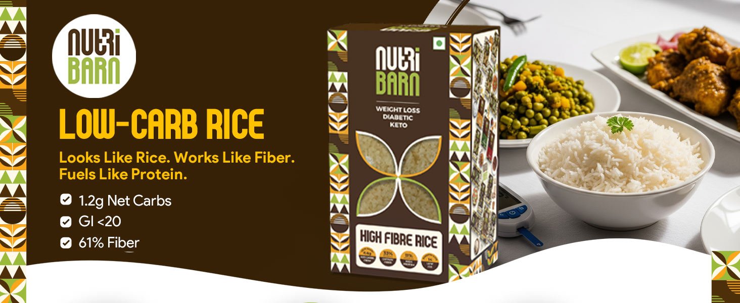 - PERFECT FOR DIABETICS & KETO : Nutribarn High Fibre Rice has just 6.6g Carbs and does not affect blood sugar and insulin levels. This makes it an ideal Rice replacement for diabetics and those following KETO, LOW-CARB & LOW-CALORIE DIETS.