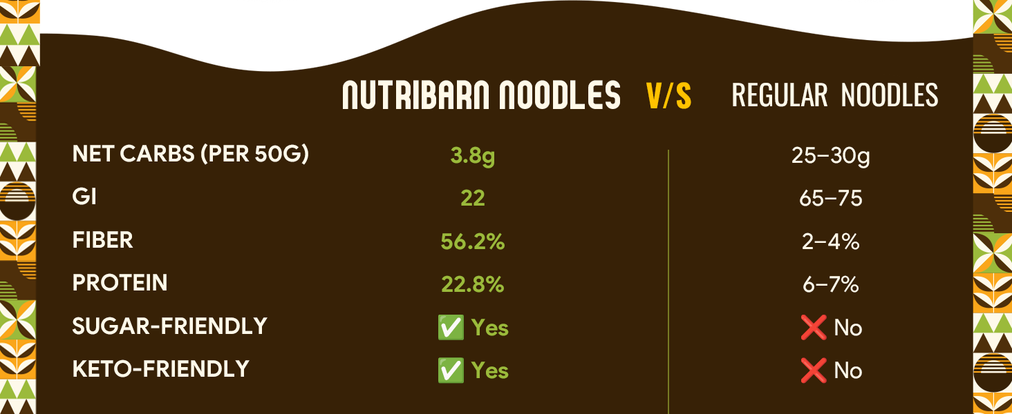 - CLINICALLY TESTED LOW GLYCEMIC INDEX (GI) OF JUST 22 : Nutribarn Keto Noodles Spaghetti is unlike Regular Noodles that spikes blood sugar, Nutribarn Keto Noodles Spaghetti is lab-tested with a remarkably low GI of 22 – that is less than Green Peas . This means sustained energy on a diabetic or low-carb lifestyle, all while enjoying delicious food!